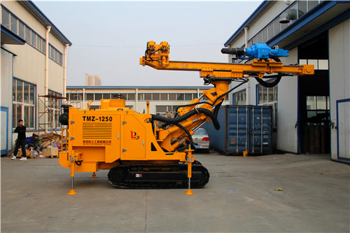 TMZ-1250 hydraulic crawler drilling rig is designed specially been used for anchor borehole drilling in small tunnels or some none-spacious places. With compact structure and articulation system combined with rotating tables it can be used for multi-position with multi-angle anchor borehole drilling.The advantage is that it can be flexible and efficiency working in small tunnels and none-spacious places.